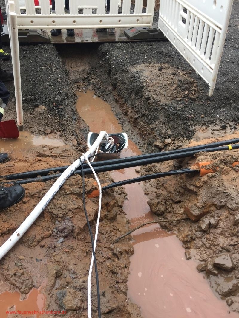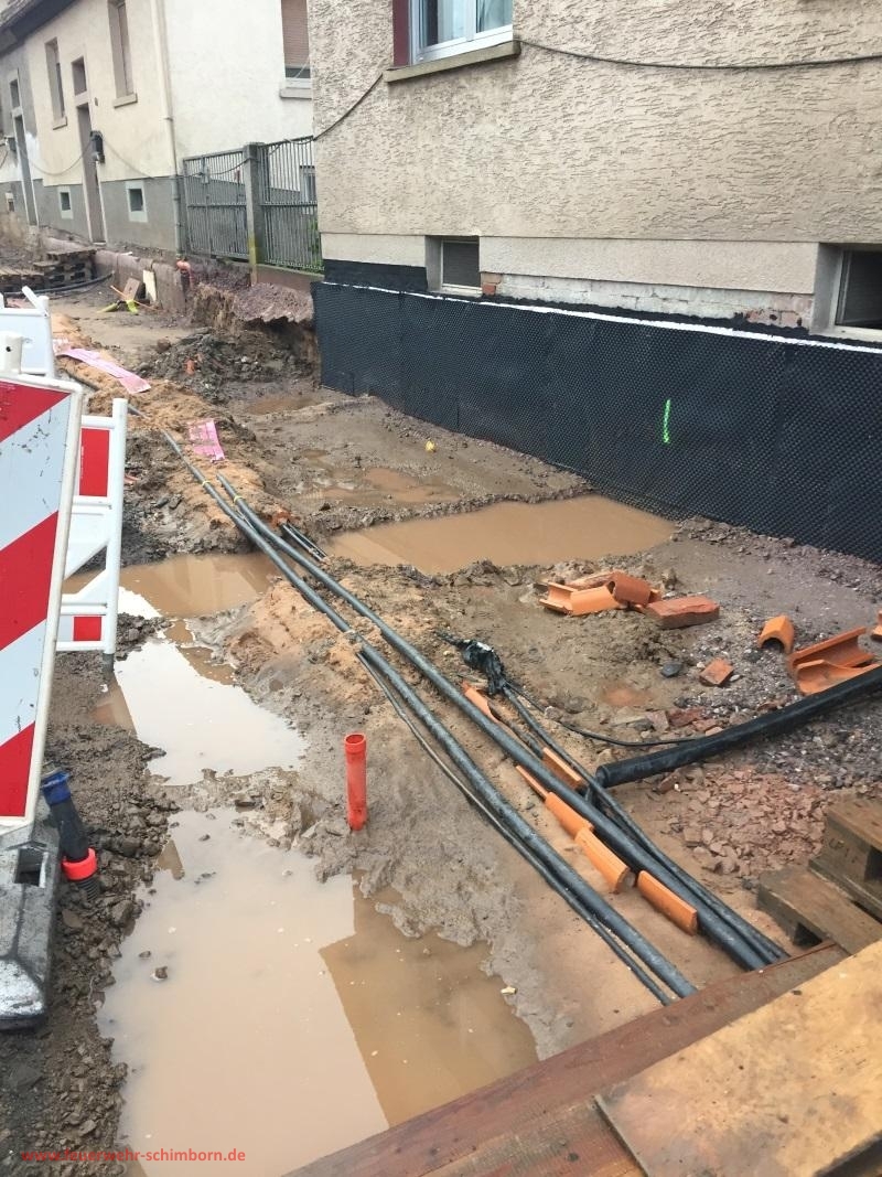 Nah länger andauerndem Regen liefen in der Baustelle Leitungsgräben mit Wasser voll, das stehende Wasser drang durch die Bodenplatte in mehrere Kellerräume eines Anwesen ein. Wassersauger und Tauchpumpe kamen zum Einsatz. Für weiter eindringendes Wasser wurde dem Eigentümer eine Flutbox zur Verfügung gestellt.