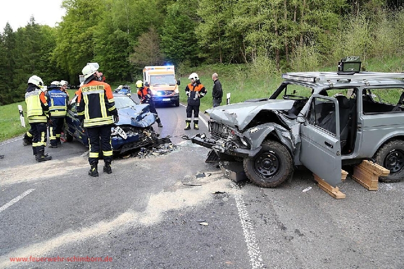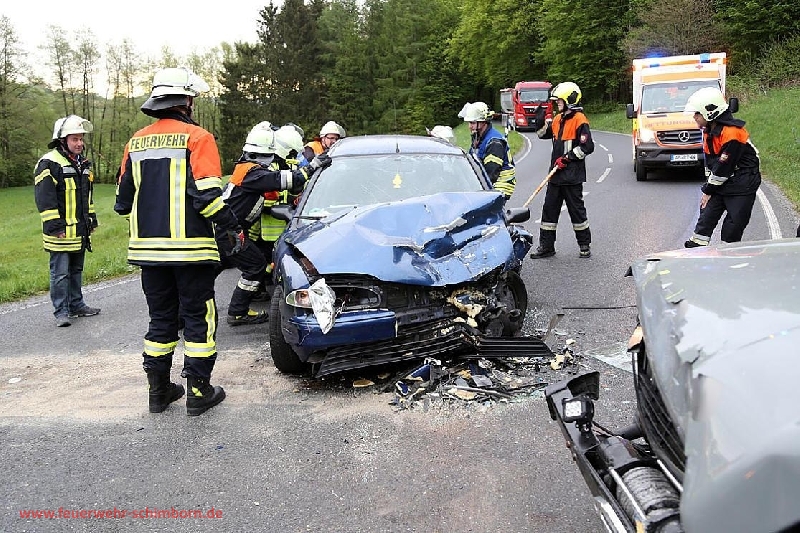 Am Freitag (26.04.2019) wurden um 06:46 Uhr die Feuerwehren Schimborn, Königshofen und Mömbris von der Leitstelle Bayerischer Untermain zu einem Verkehrsunfall auf die Staatsstraße 2305 zwischen Königshofen und Blankenbach alarmiert. Durch das gewählte Alarmstichwort: Verkehrsunfall mit mehreren Fahrzeugen und eingeklemmten Personen, wurden die Kreisbrandinspektoren Frank Wissel und Otto Hofmann ebenfalls entsandt. Der Einsatzleiter Benjamin Weidinger, Kommandant der Feuerwehr Schimborn, fand beim Eintreffen an der Unfallstelle zwei PKWs vor, die in Folge eines Frontalzusammenstoßes beschädigt auf der Fahrbahn standen. Der 35 – jährige Fahrer des Lada wurde durch das Unfallgeschehen in seinem Fahrzeug eingeklemmt. Er musste von der Feuerwehr unter Anleitung des Notarztes mit hydraulischem Rettungsgerät patientengerecht befreit werden. Der 24 - jährige Fahrer des Fords befand sich beim Eintreffen der Rettungskräfte bereits außerhalb seines Fahrzeugs. Beide Unfallbeteiligten wurden von medizinisch geschulten Feuerwehrkräften bis zum Eintreffen des Rettungsdienstes erstversorgt. Die zwei Schwerverletzten wurden vom Rettungsdienst, der mit zwei Rettungswagen, einem Rettungshubschrauber und einem Notarzteinsatzfahrzeug sowie einem Einsatzleiter Rettungsdienst an der Unfallstelle war, in die umliegenden Krankenhäuser gebracht. Die Staatsstraße war für die Dauer des Einsatzes im Auftrag der Polizei komplett gesperrt. Die Feuerwehrkräfte leiteten den Verkehr um. Der Einsatzleiter konnte auf rund 35 Feuerwehrleute zurückgreifen, die mit acht Fahrzeugen ausgerückt waren. Über die Art der Verletzungen, die Unfallursache sowie den Sachschaden kann seitens der Feuerwehr keine Aussage gemacht werden. Mit freundlichen Grüßen Markus Fischer Pressesprecher der Kreisbrandinspektion