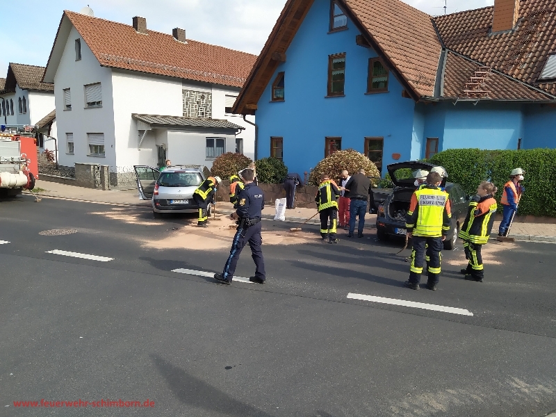 Nach einem VU zweier Fahrzeuge wurde der Verkehr geregelt und Betriebsstoffe aufgenommen. Nach dem Abschleppen der Unfafahrzeuge wurde die Fahrbahn von Fahrzeugteilen gesäubert
