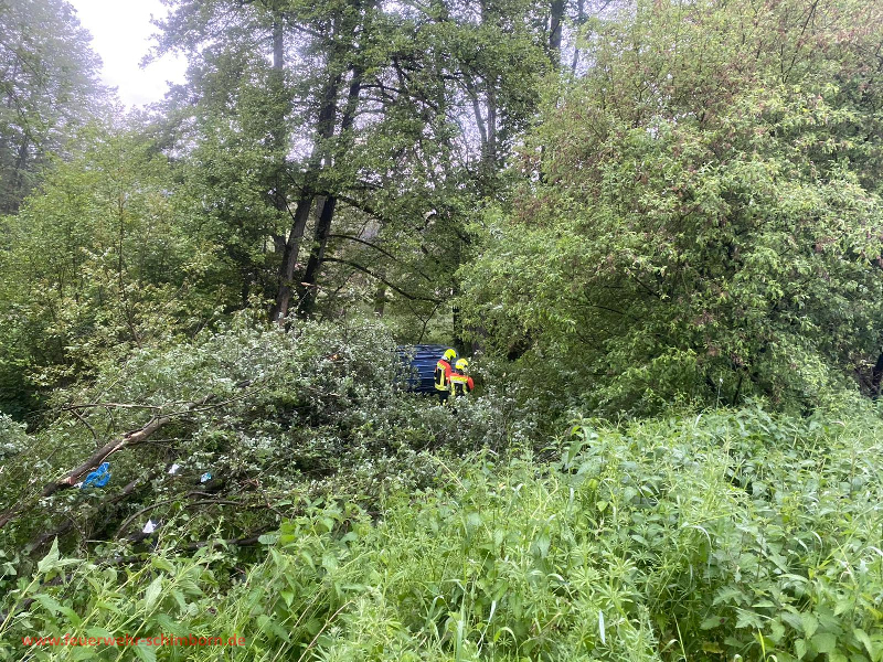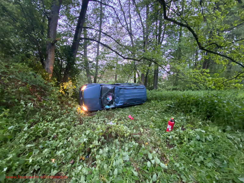 Ein PKW kam auf der nassen Fahrbahn ins rutschen, überschulug sich mehrmals und kam dann im Graben zum Liegen. Die Fahrerin konnte selbstständig aussteigen, ihr passierte glücklicherweise nichts. Wurde dann mit Rettungsdienst untersucht und in ein Krankenhaus verbracht.