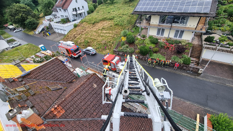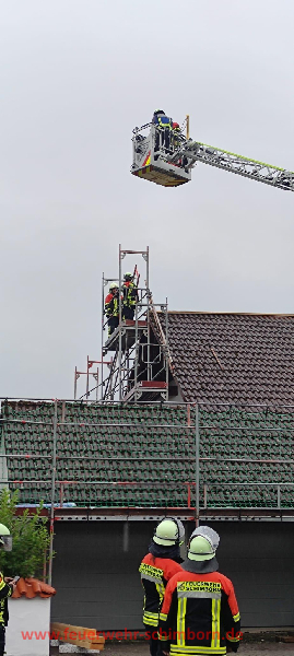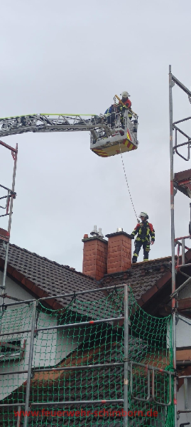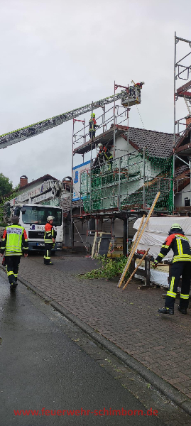 Bei Eintreffen am Einsatzort wurde festgestellt, dass das Dach eines Wohngebäudes nach kürzlich stattgefundenen Bauarbeiten durch einen Sturm beschädigt wurde und undicht war.