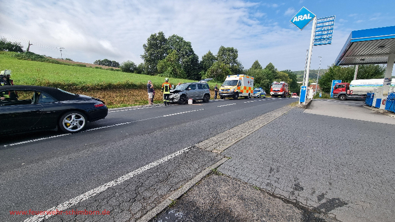 Ein Auffahrunfall im Bereich der Tankstelle führte zu einem Alarm für Polizei, Rettungsdienst und Feuerwehr.